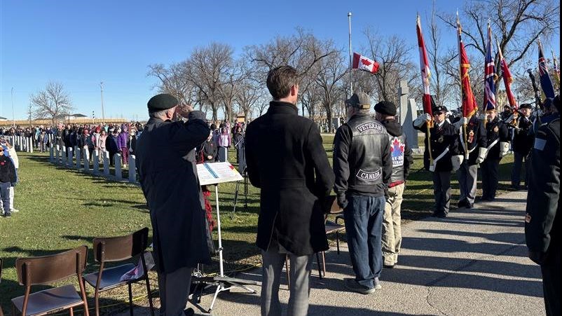 RETSD partnered with the Transcona Legion Branch #7 to hold the event, which saw students place poppies on the graves of veterans in the Transcona Cemetery Field of Honour. Every military gravestone was paid respects by one or more students, who saluted veterans during the ceremony. In the days leading up to the event, the students learned about the importance of remembrance and were visited by Peter Martin, Manitoba regional co-ordinator for No Stone Left Alone, so he could show them how to properly salute.